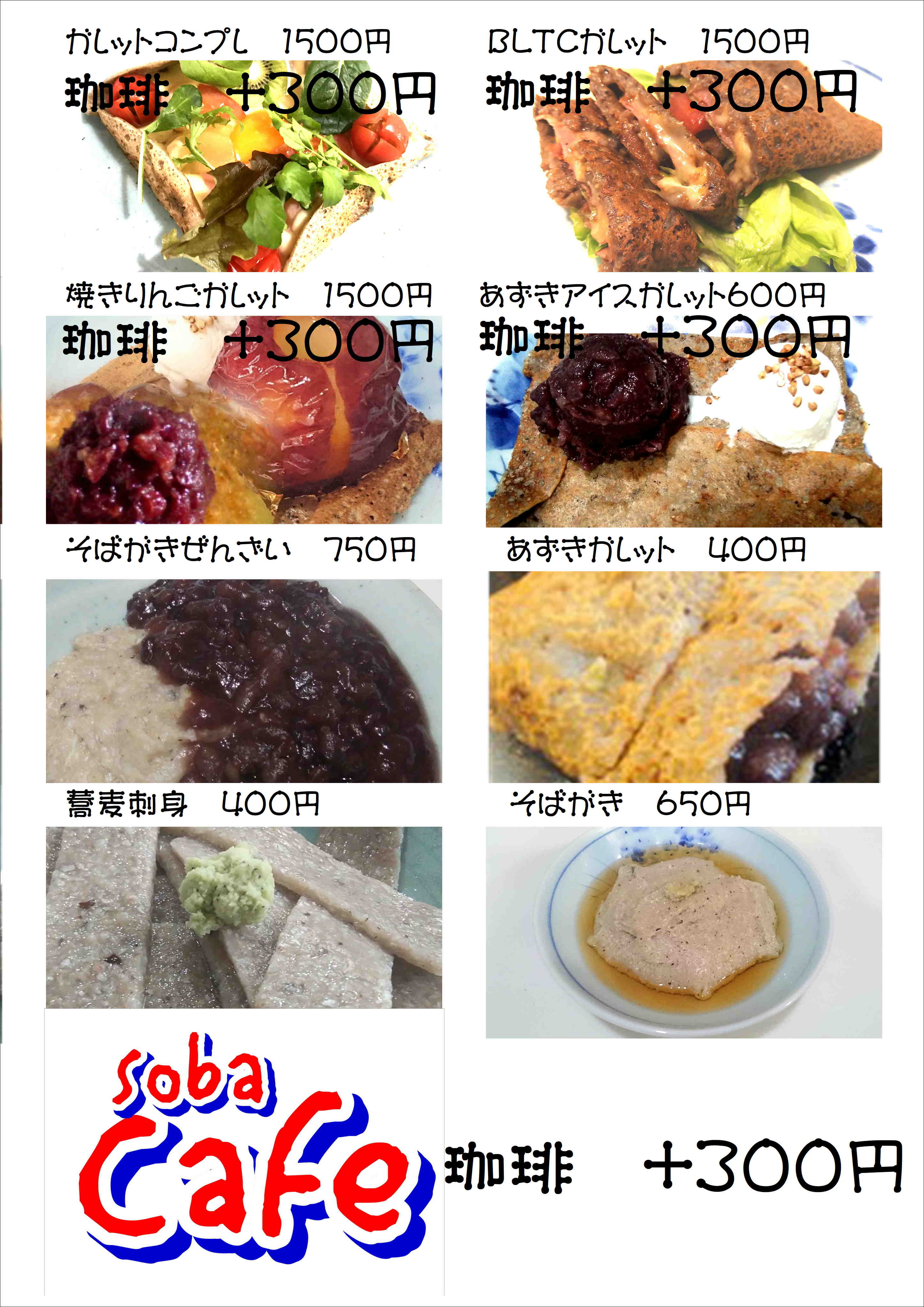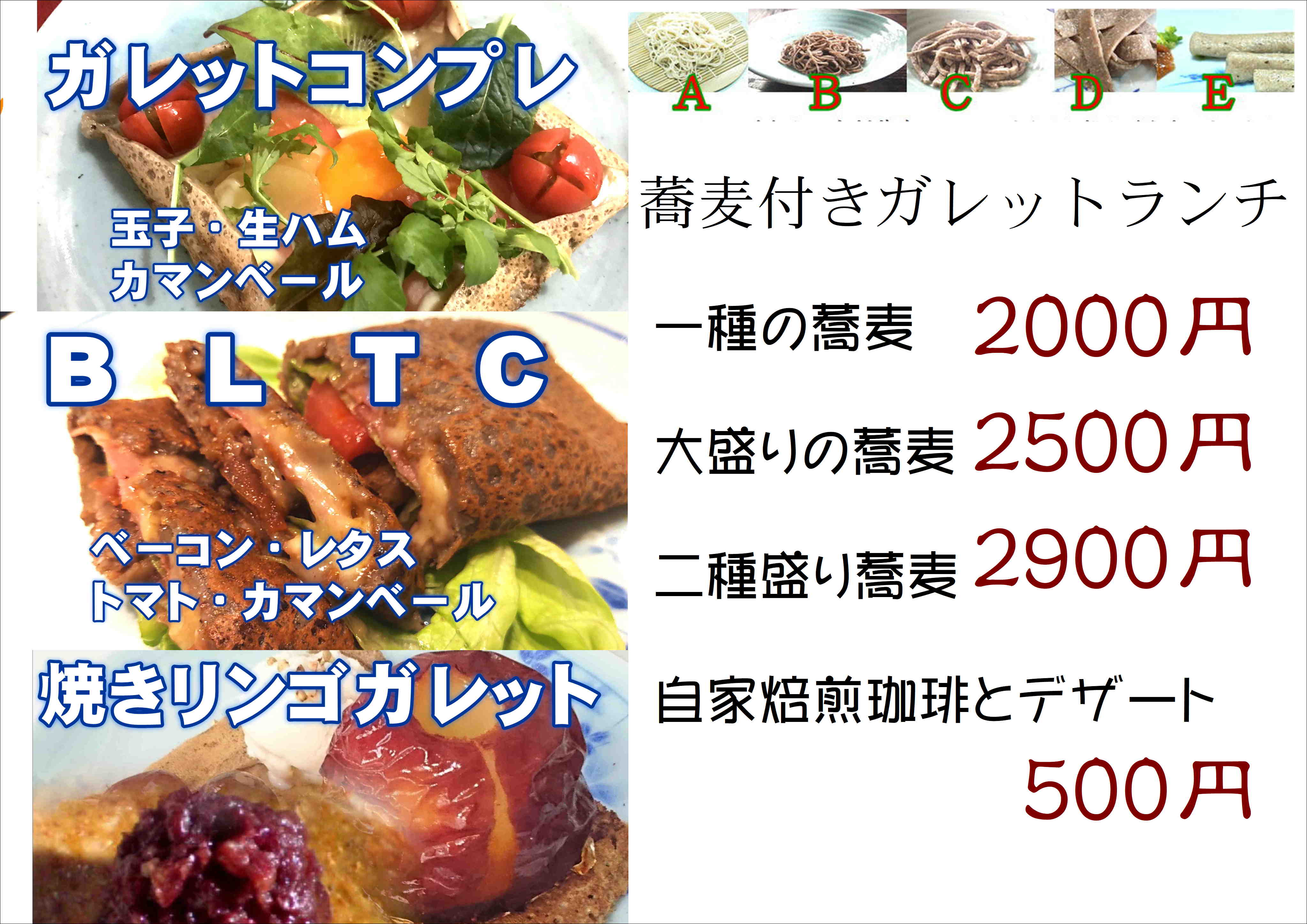 蕎麦とCafeメニューの最新情報をご覧くださいませ。洋服の青山の駐車場の東北側になります、ワークマンの横の小路を20メートル北に行くと小さな案内掲示板があります、突き当りを左に行くと 貴方の日常に、ほっと一息つける店主手作りの小さな隠れ家蕎麦屋です 蕎麦と自家焙煎珈琲ガレットをお楽しみくださいませ。